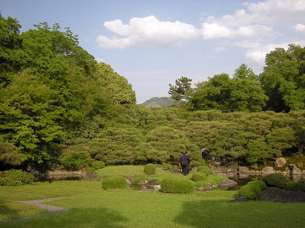 左図には予定線(未成線)も記載されていて,堀川中立売から堀川~寺之内~御前経由で北野を結ぶ路線(+寺之内御前から金閣寺への枝線)と,後の叡電に相当する三宅線が京電の計画,烏丸今出川~河原町一条を結ぶのが市電の延長計画である。市電側の計画は実現したが,この先鴨川を渡って東一条通から東山通を熊野神社前へ延伸する計画だった。これは今出川通の延長上に西園寺公望の別邸(現・清風荘)があってこれを迂回する為だったが,結局敷地の一部が今出川通の拡幅用地に提供された。東一条通に市電が走ることはなかったが,川端~東山間はその準備工事で拡幅されている(右写真は清風荘の庭園から見える大文字)。