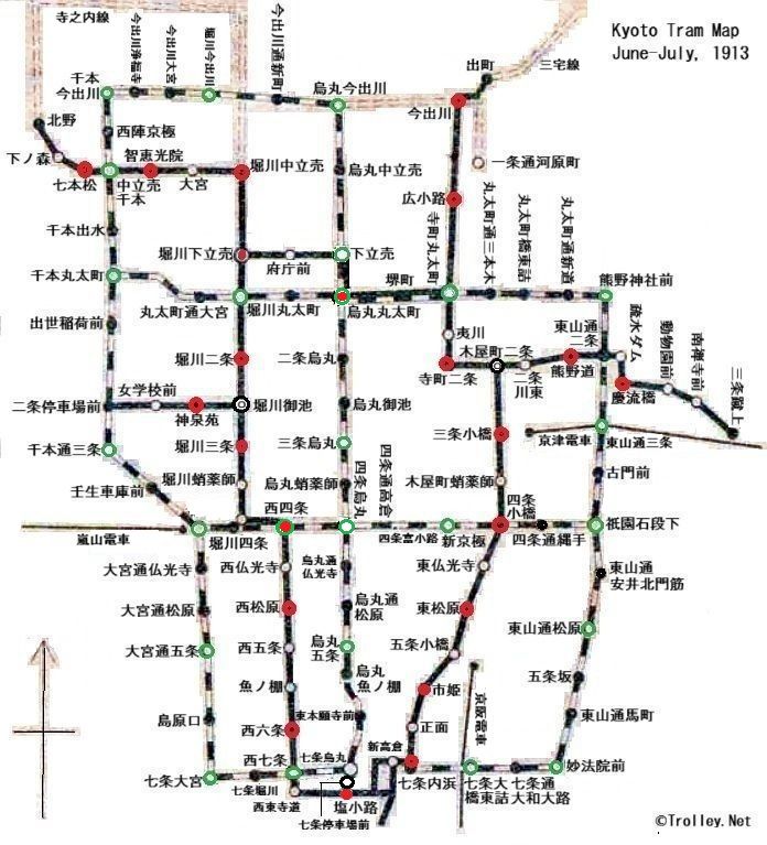 京電の西洞院線の敷設は遅れた為,停留場名が西六条や西松原等,木屋町線を基準として「西」を付すものが多いが,札幌市電の山鼻西線の停留場名(西線6条等)を想起させる。(12/14/2025)